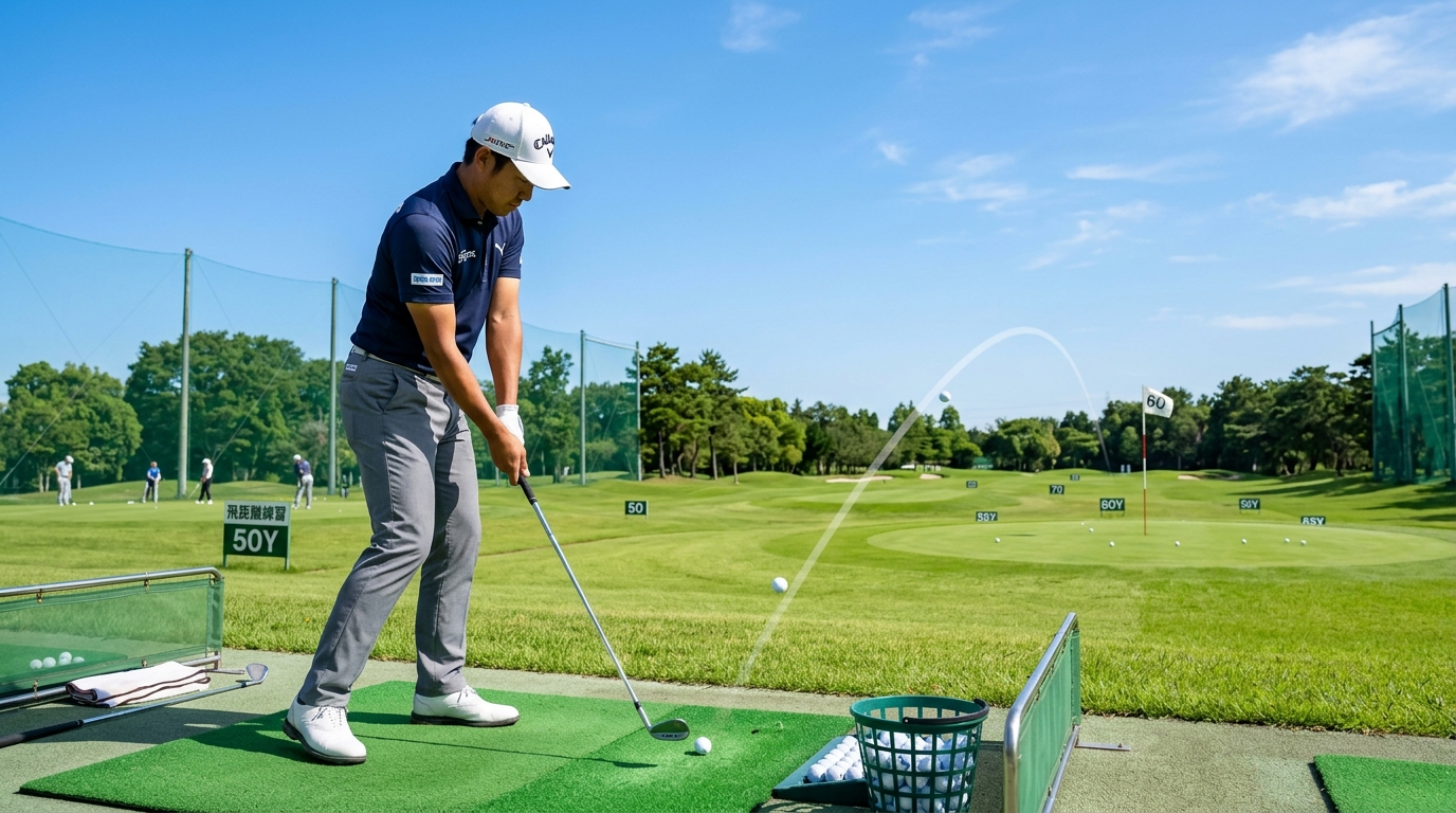 30ヤード・50ヤード・70ヤードなど、目標距離を決めて繰り返し打つ練習が効果的です。同じリズム・同じスイングの大きさで打てるようになると、コース本番でも距離感が安定してきます。