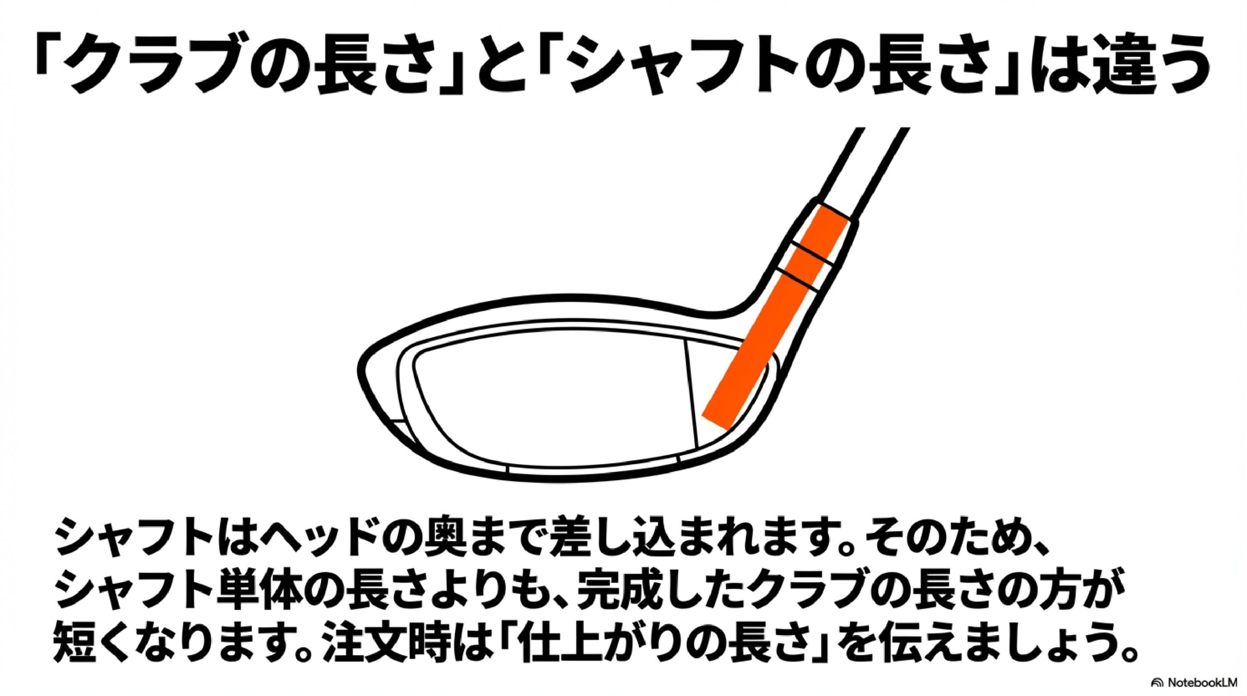 ・シャフト長とクラブ長は異なる。カスタム時は「仕上がりクラブ長」を伝える