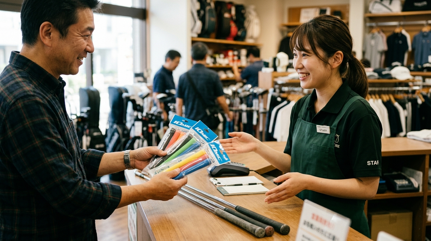 グリップ選びに迷ったときはゴルフ5のスタッフへ相談するのがおすすめです。使用頻度やプレースタイル、手の大きさなどを伝えると最適なモデルを提案してもらえます。