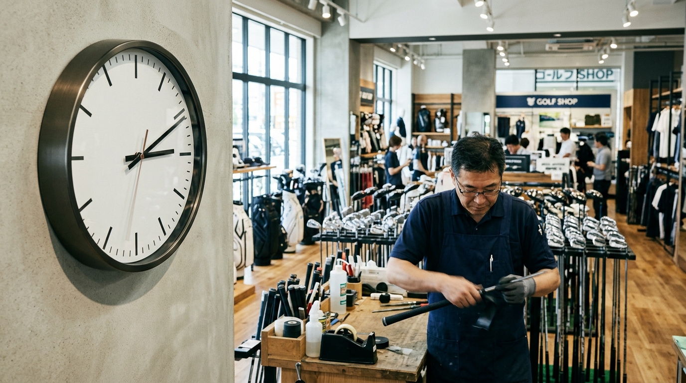 即日仕上げに対応している店舗が多い一方で、グリップの乾燥時間を考慮すると当日ラウンドでの使用は慎重に判断する必要があります。事前予約を活用することで待ち時間を減らし、スムーズに対応してもらいやすくなります。